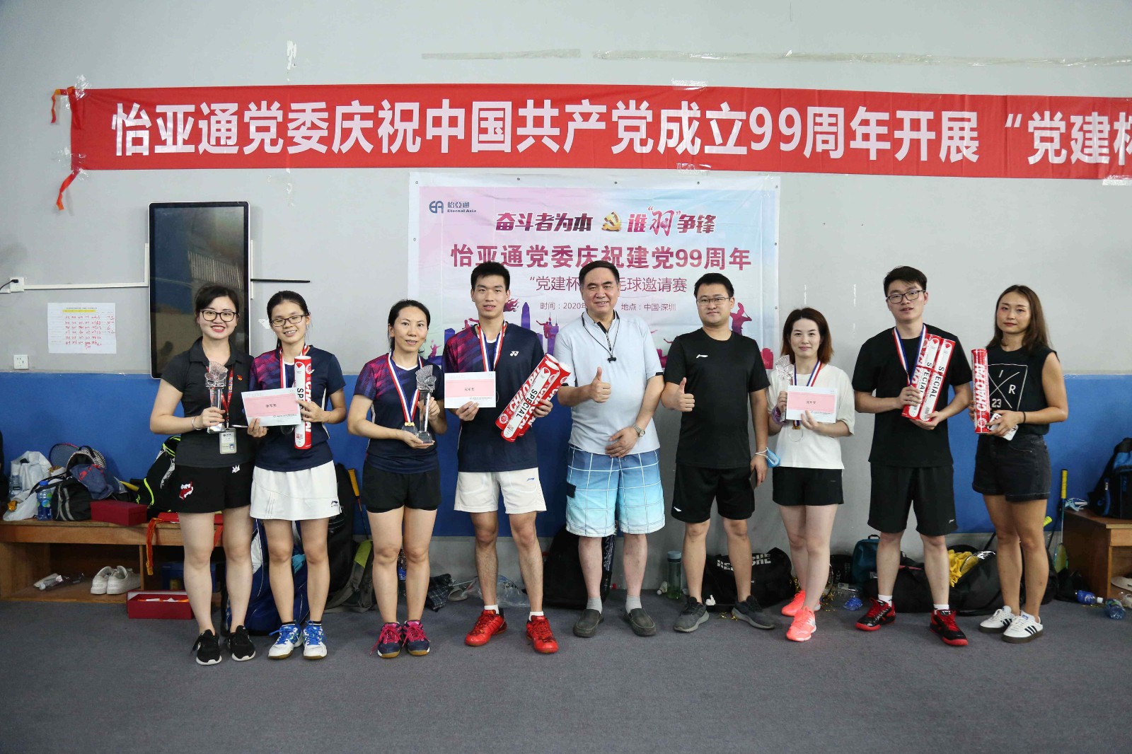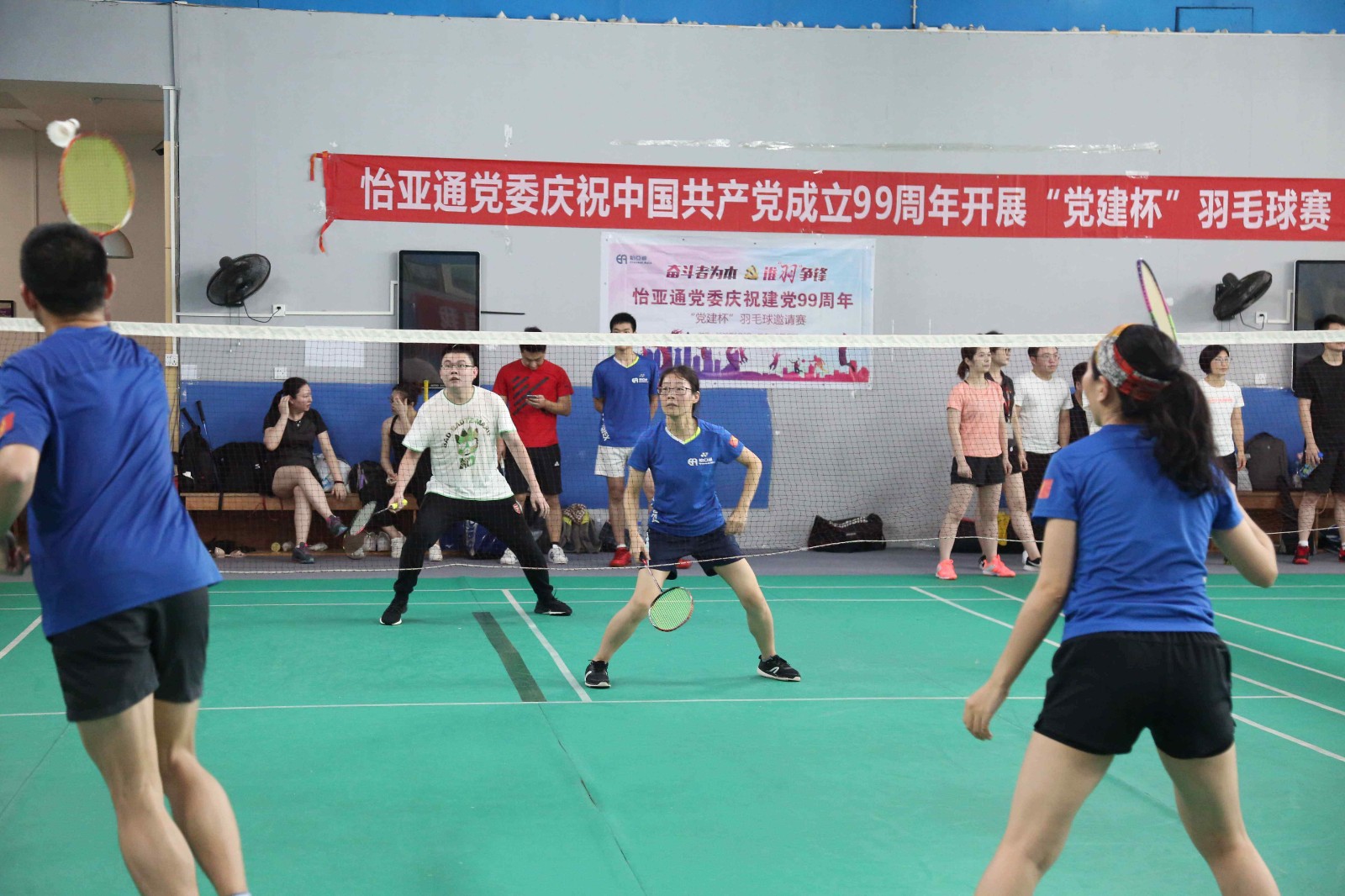 为积极响应公司董事长兼CEO周国辉先生号召,全员学习“奋斗者为本”精神,发挥党员先锋作用,在岗位中开拓进取,创新突破,进一步增强党组织的凝聚力、战斗力。展现怡亚通人积极进取、奋勇争先、顽强拼搏的精神风貌。6月6日,值建党99周年之际,怡亚通党委组织庆祝建党99周年“党建杯”羽毛球邀请赛在万国羽毛球馆激情开赛。